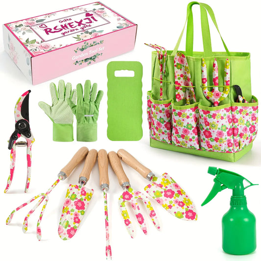 10-Piece Heavy-Duty Garden Tool Set with Floral Organizer Bag — The Perfect Gift for Women Who Love to Grow