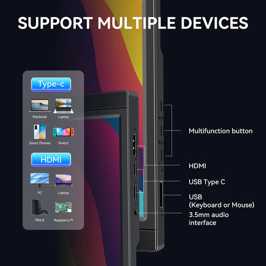 Amoudo 15.6 Inch Portable Monitor 1920x1080P Extend Display IPS LCD Panel Penhole Stand VESA USBC Mini HDMI Mobile Display