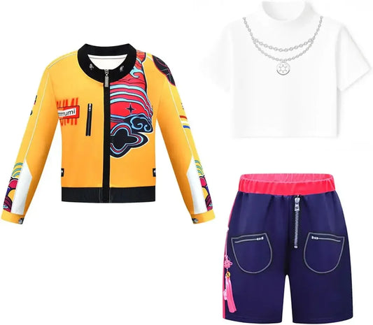 Kids Girls Kpop Rumi Zoey Mira Demon Hunters Cosplay Costume Disguise for Child Printed Clothes Roleplay Halloween Carnival Suit