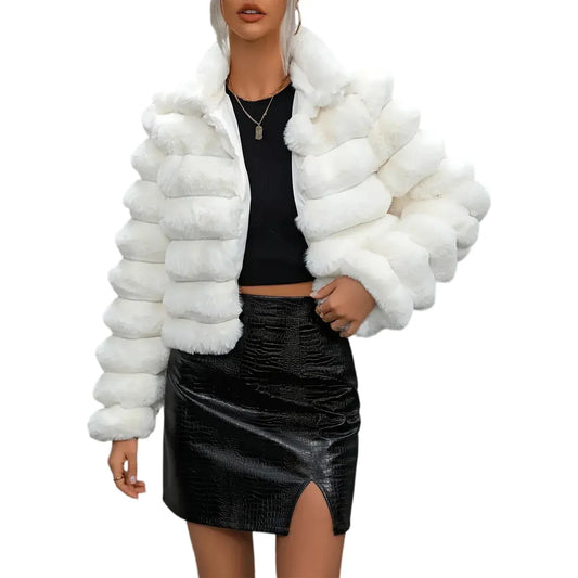 New Coat Women's Faux Fur Short Jacket Autumn Winter Lapel Faux Mink Fur Party Club White Zipped Coat Vintage Furry Outerwear