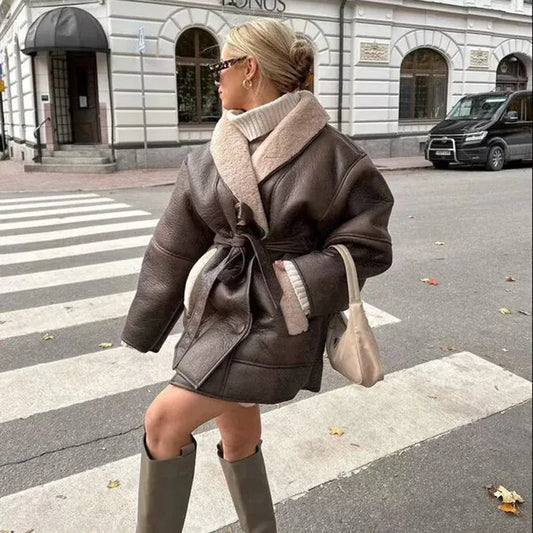 New in Winter Leather Jacket Women Coat Faux Fox Fur Collar Short Coat PU Leather Female Jacket Elegant OuterwearVintage Chic