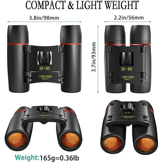 30X60 High Definition Foldable Binoculars - Outdoor High Magnification Low Light Night Vision Portable Lightweight Binoculars