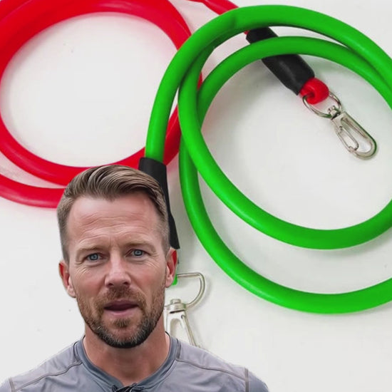 Yellow (10LB), Green (15LB), Red (20LB), Blue (25LB), Black(30LB). All resistance bands can be combined to provide up to 100 pounds of weight.