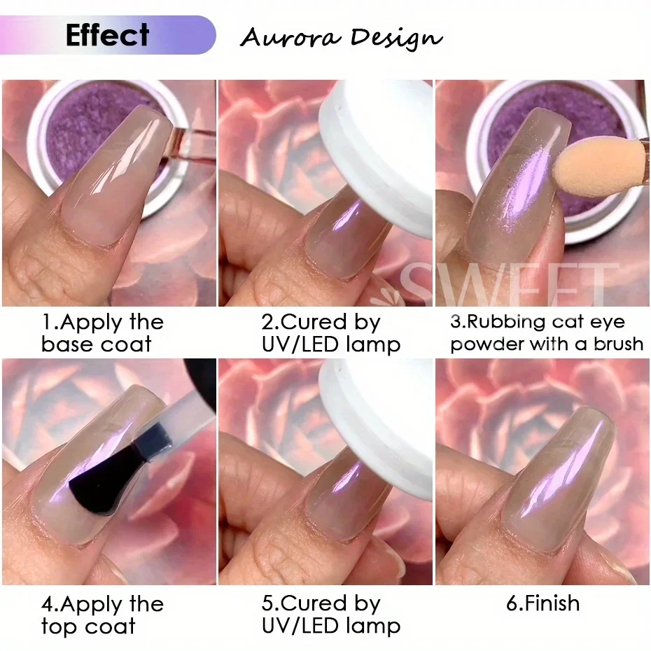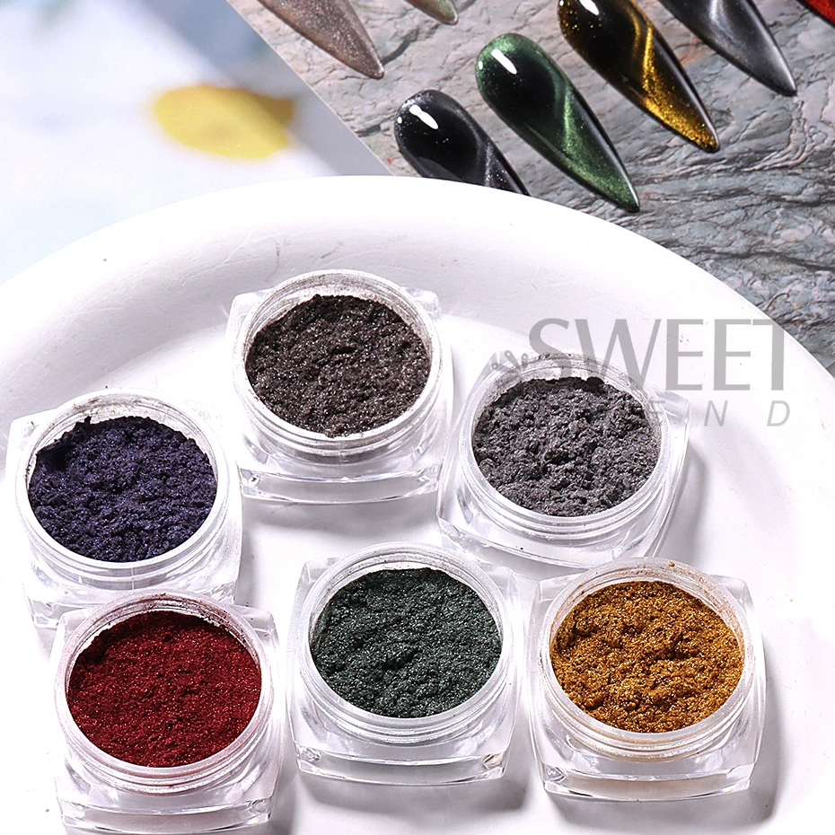 6 Colors Cat Eye Chrome Magnetic Nail Powder Pearl Fairy Pigment Reflective Effect Rubbing Dust DIY Charm Manicure Decor Flash