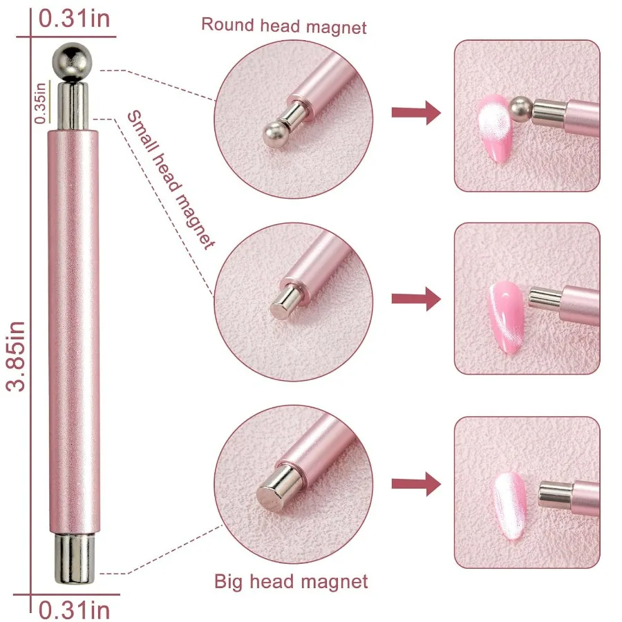 Cat Eye Magnet Set for Nails, Pink Double Head & Round Magnets for Gel Nail Art, Professional Manicure Tools Kit