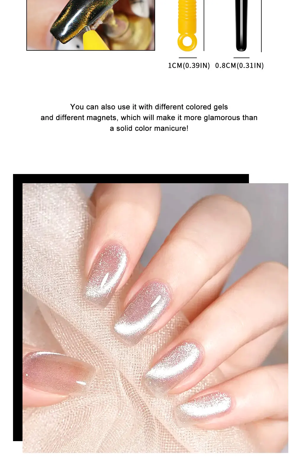 1.Our nail art cat eye magnet can help you create amazing 3D cat eye effects, making your fingertips more shiny and unique.