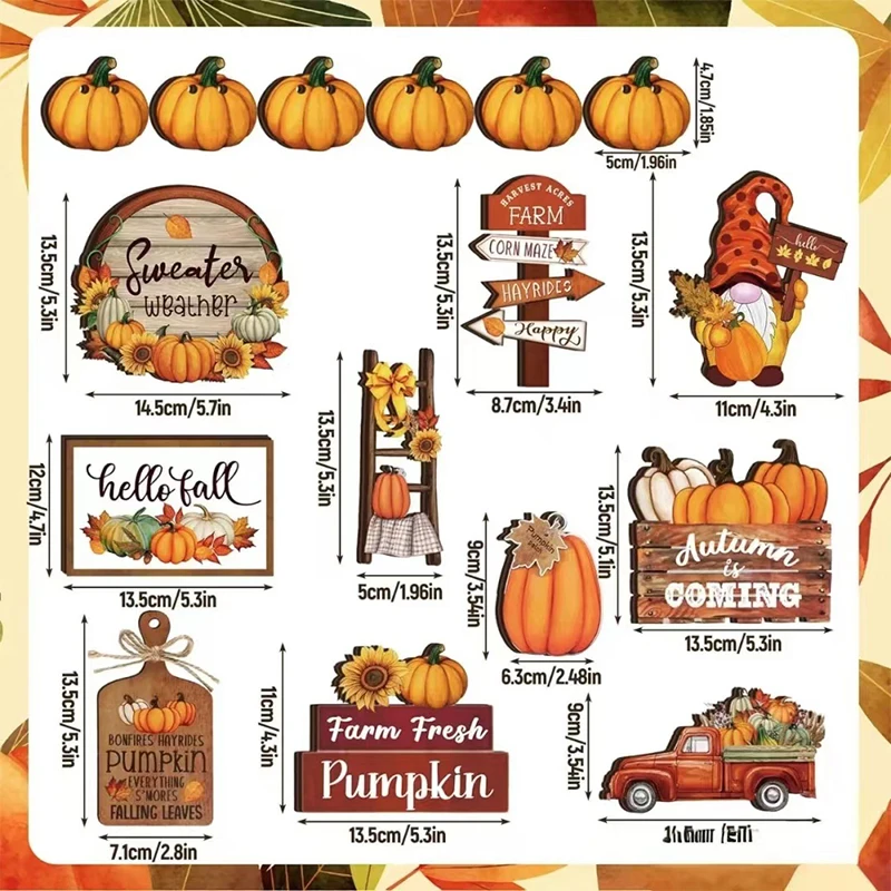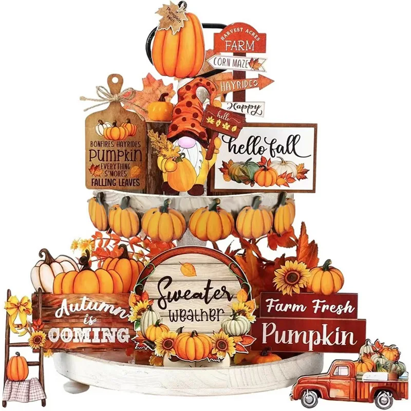 Thanksgiving Day Wooden Desktop Ornament Table Decoration Fall Harvest Tiered Tray Decor Pumpkin Maple Leaf Accents Farmhouse