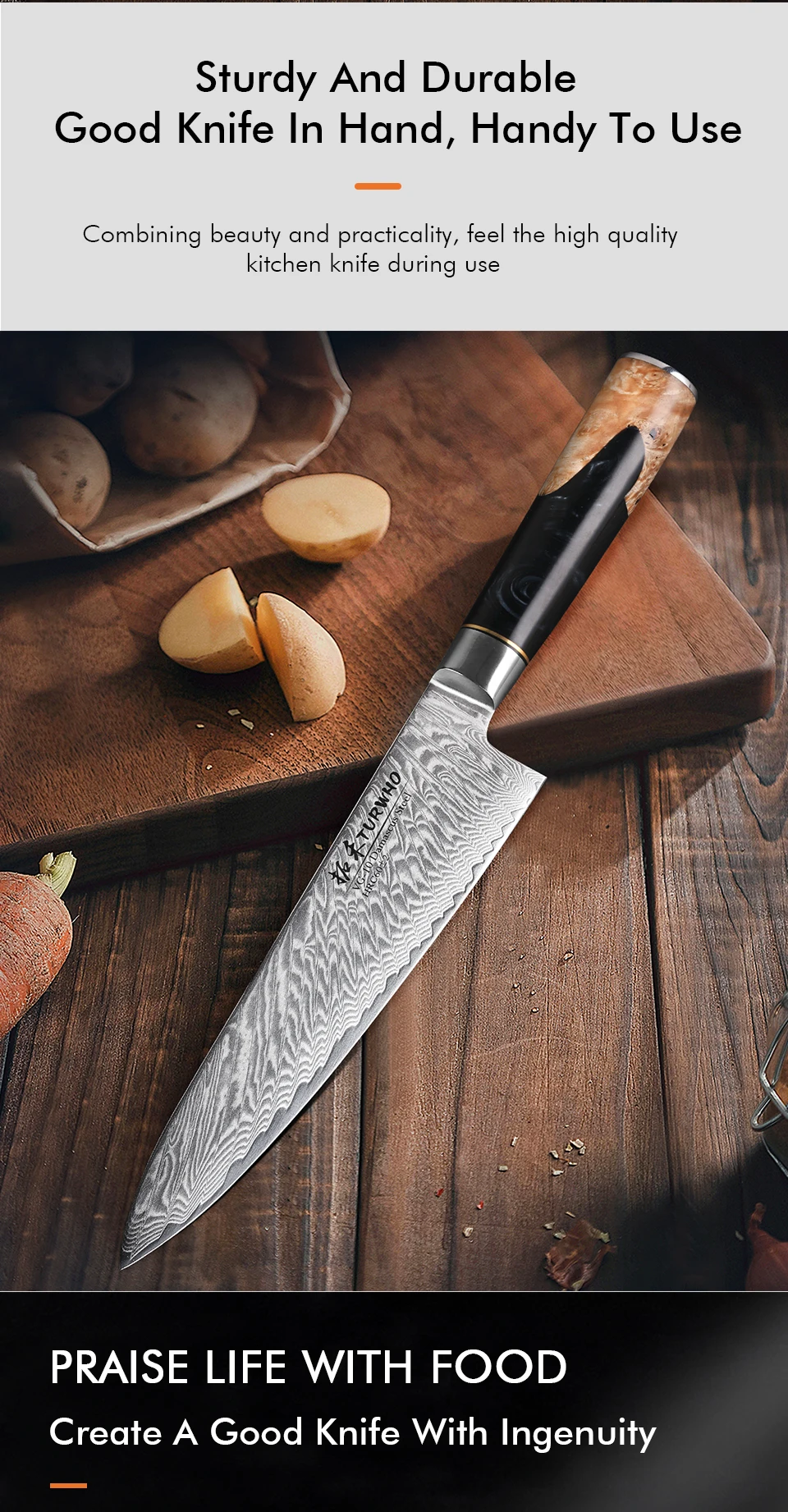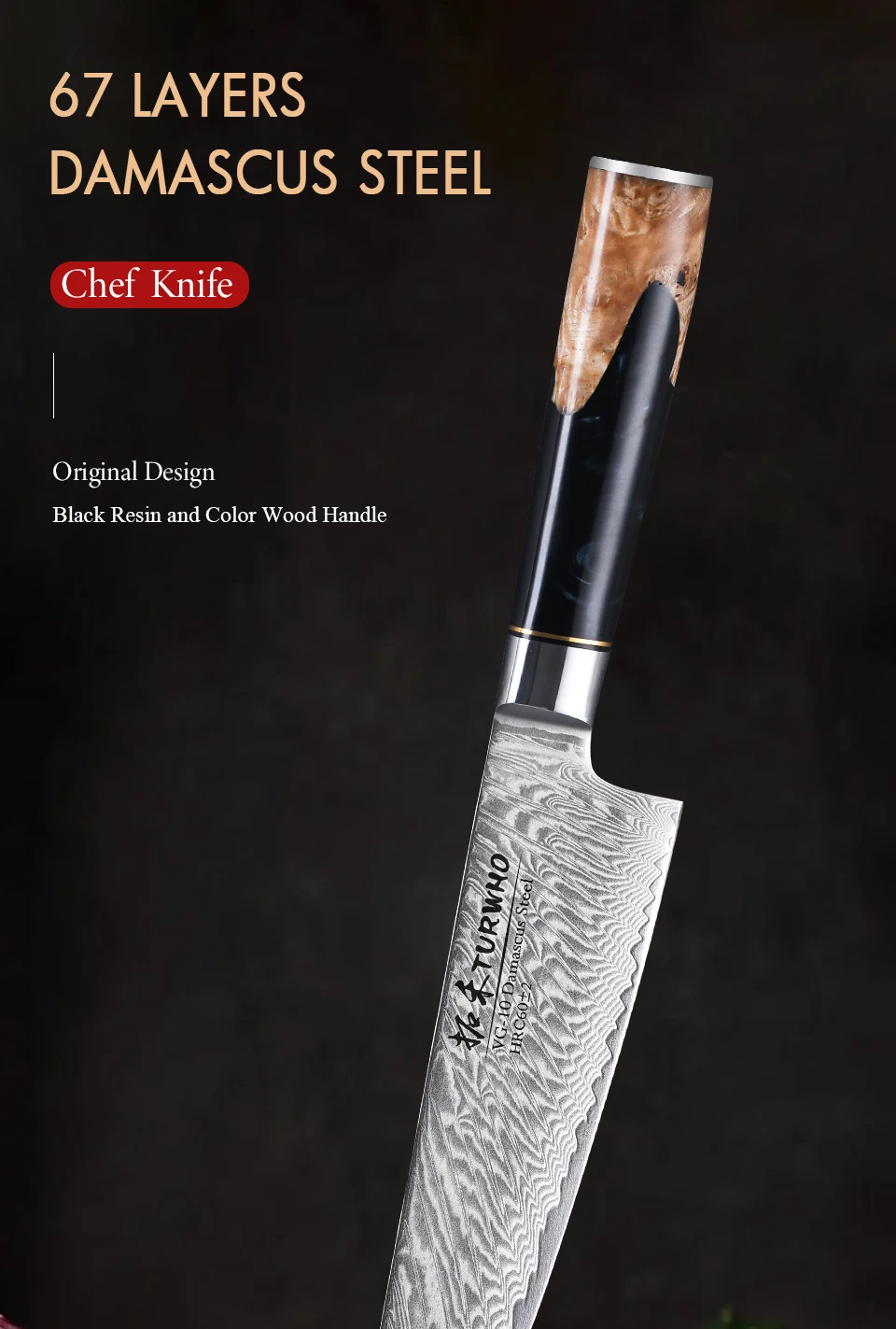 TURWHO 8 Inch Chef Knife Gyuto Knife Japanese Style VG10 Core Damascus Kitchen Knives Stainless Steel Butcher Knife Resin Handle