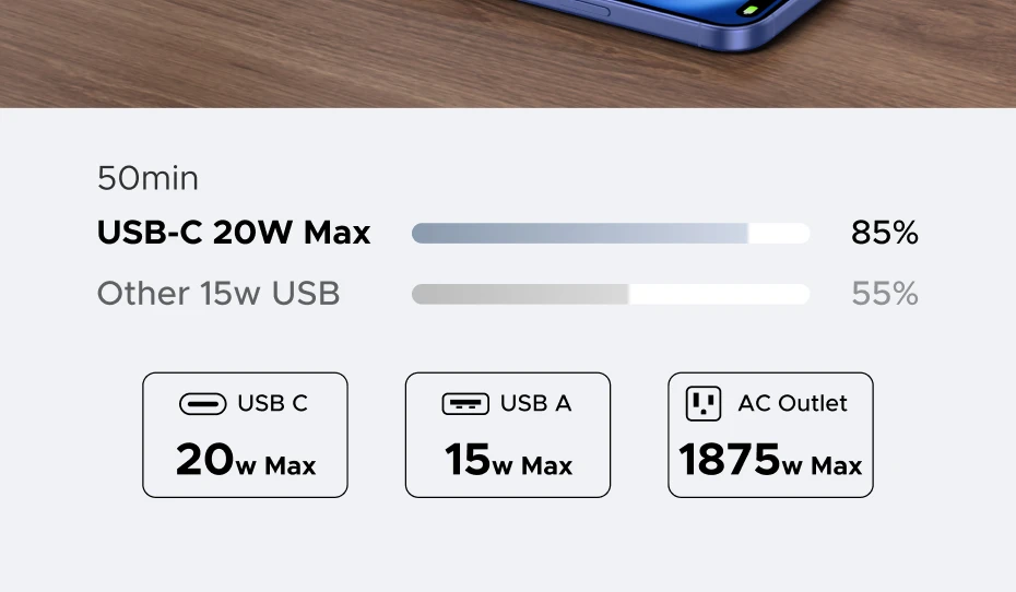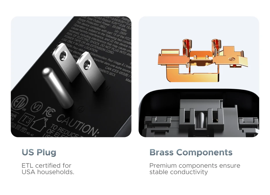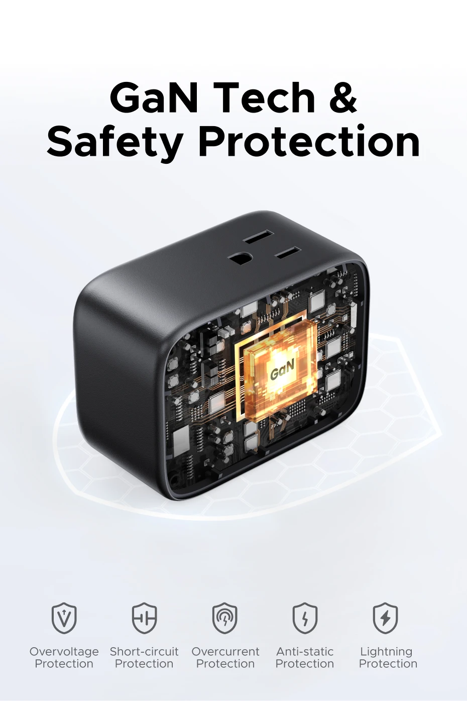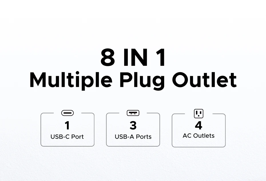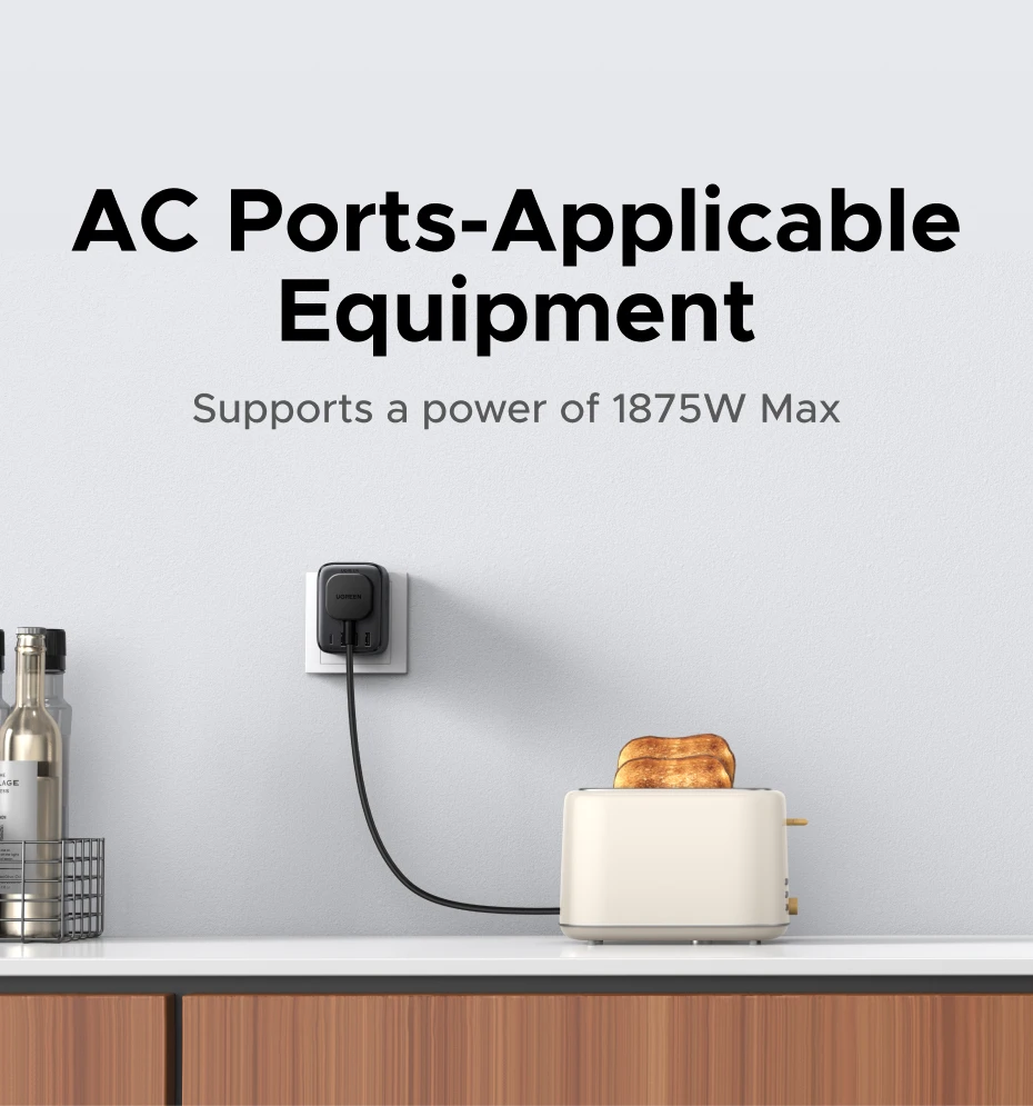 UGREEN Outlet Extender 20W Power Strip 4 AC Outlets 3 USB-A 1 USB-C Wall Charger for Home Office Travel 1875W 15A 125V